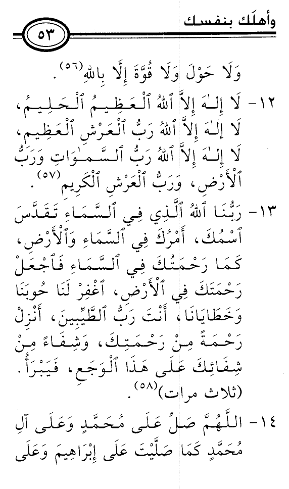 وَلاَ حَوْلَ وَلاَ قُوَّةَ إِلَّا بِاللهِ (¬56) .