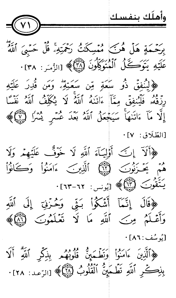 بِرَحْمَةٍ هَلْ هُنَّ مُمْسِكَاتُ رَحْمَتِهِ قُلْ حَسْبِيَ اللَّهُ عَلَيْهِ يَتَوَكَّلُ الْمُتَوَكِّلُونَ *} [الزُّمَر: 38] .