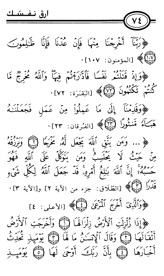 {إِذَا زُلْزِلَتِ الأَرْضُ زِلْزَالَهَا *وَأَخْرَجَتِ الأَرْضُ أَثْقَالَهَا *وَقَالَ الإِنْسَانُ مَا لَهَا *يَوْمَئِذٍ تُحَدِّثُ أَخْبَارَهَا *بِأَنَّ رَبَّكَ أَوْحَى لَهَا *يَوْمَئِذٍ