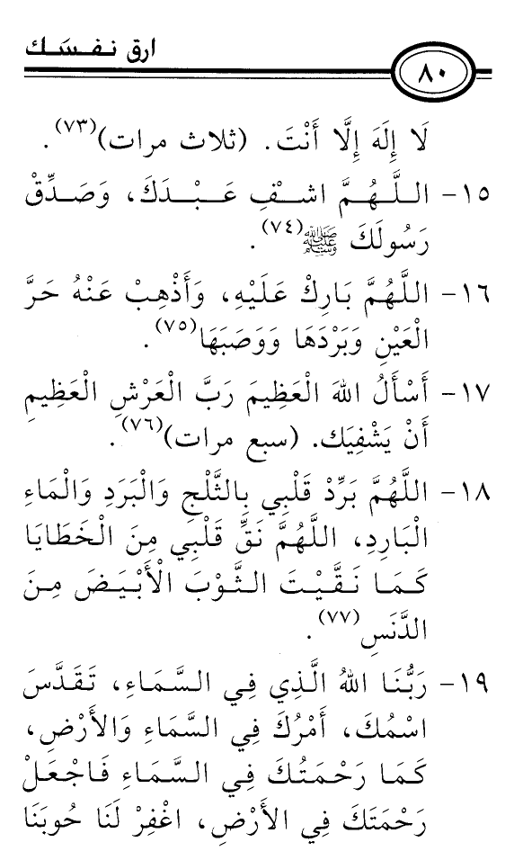 أَسْأَلُ اللهَ الْعَظِيمَ رَبَّ الْعَرْشِ الْعَظِيمِ أَنْ يَشْفِيَك. (سبع مرات) (¬76) .