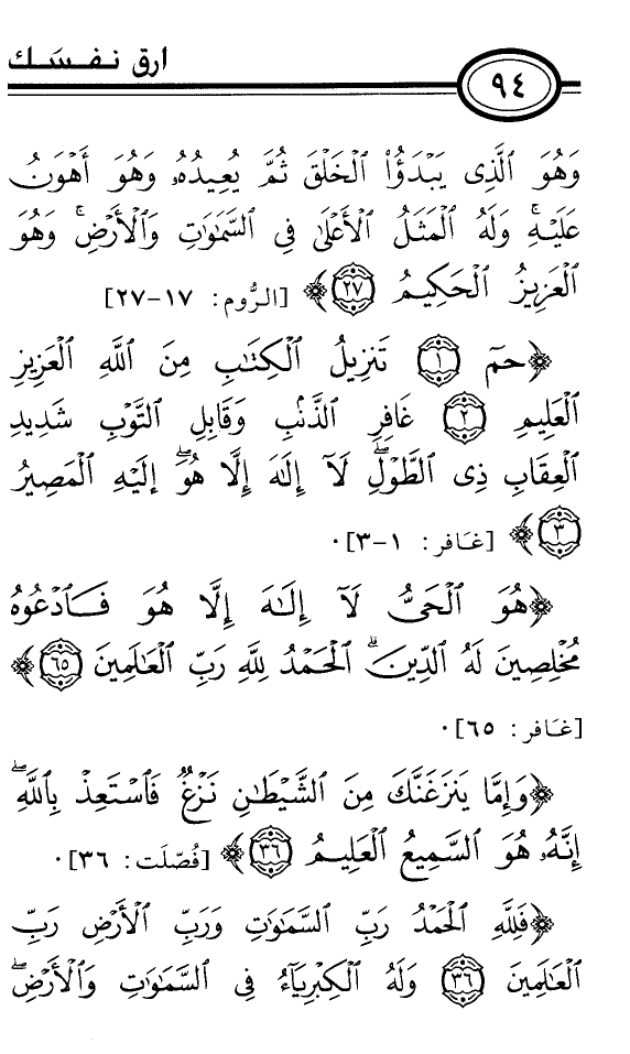 {هُوَ الْحَيُّ لاَ إِلَهَ إِلاَّ هُوَ فَادْعُوهُ مُخْلِصِينَ لَهُ الدِّينَ الْحَمْدُ لِلَّهِ رَبِّ الْعَالَمِينَ *} . [غَافر: 65]