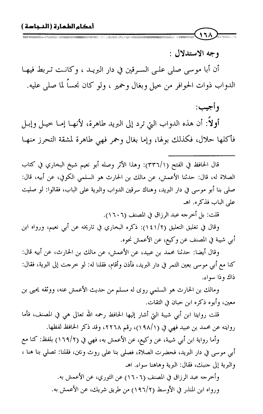 أولاً: أن هذه الدواب التي ترد إلى البريد طاهرة، لأنها إما خيل وإبل فأكلها حلال، فكذلك بولها، وإما بغال وحمر فهي طاهرة لمشقة التحرز منها