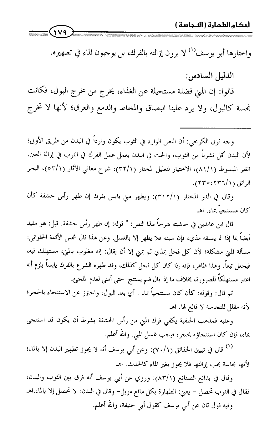 (¬١) قال في تبيين الحقائق (١/ ٧٠): وعن أبي يوسف أنه لا يجوز تطهير البدن إلا بالماء؛ لأنها نجاسة يجب إزالتها فلا يجوز بغير الماء كالحدث. اهـ