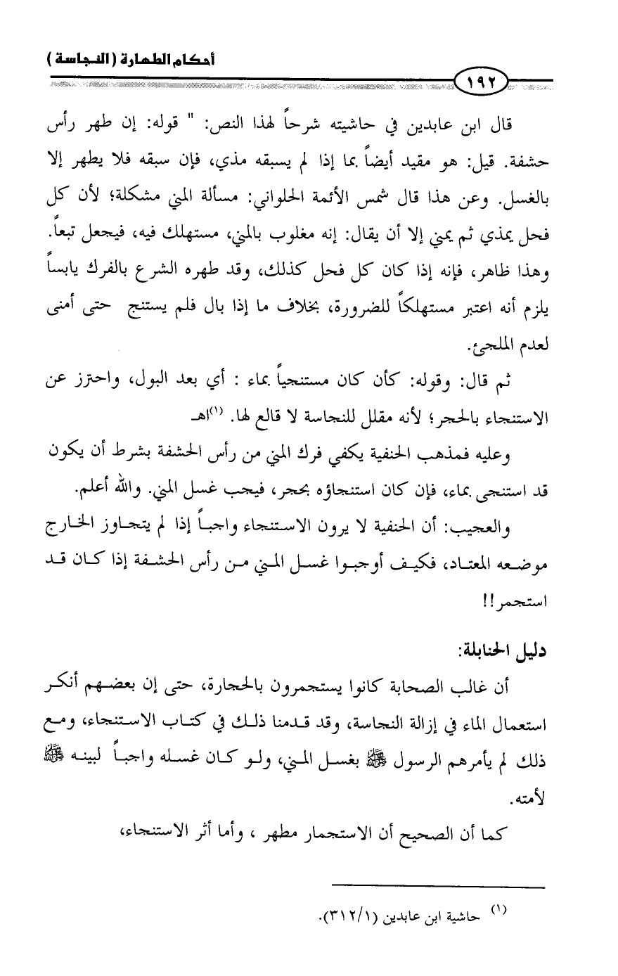 (¬١) حاشية ابن عابدين (١/ ٣١٢).