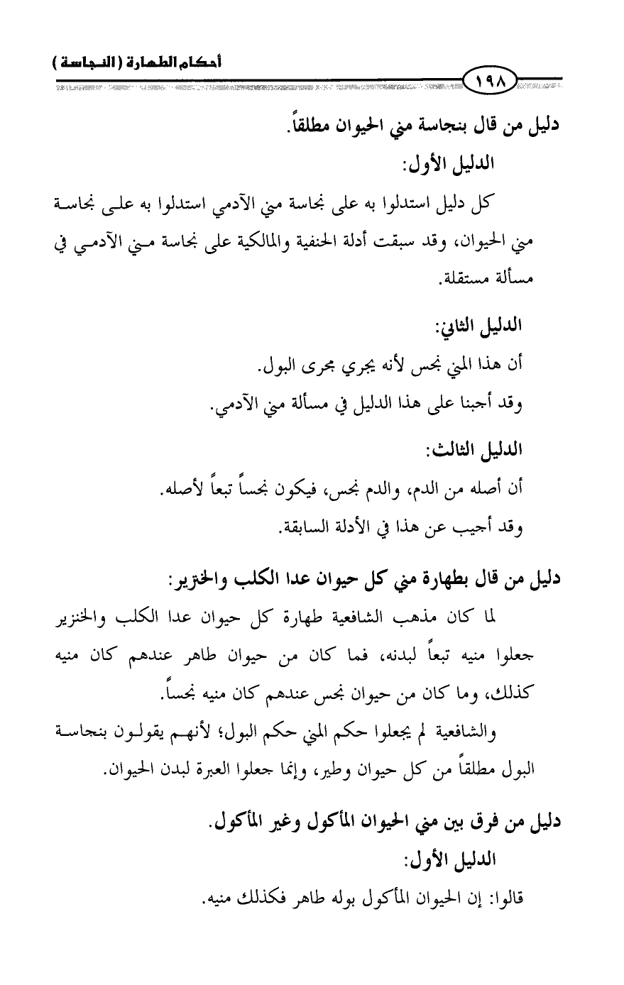 دليل من قال بنجاسة مني الحيوان مطلقاً.