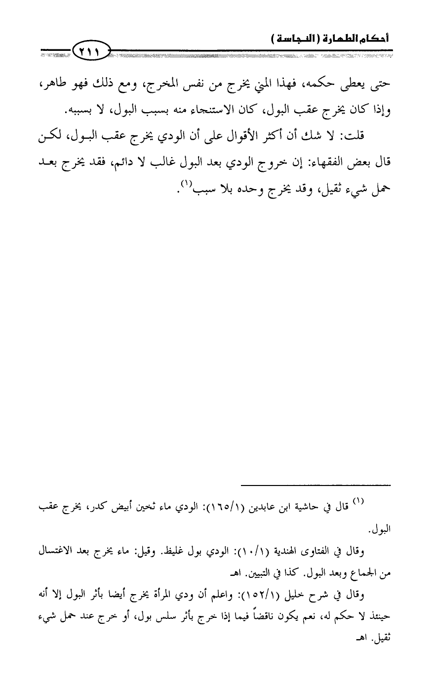 (¬١) قال في حاشية ابن عابدين (١/ ١٦٥): الودي ماء ثخين أبيض كدر، يخرج عقب البول.