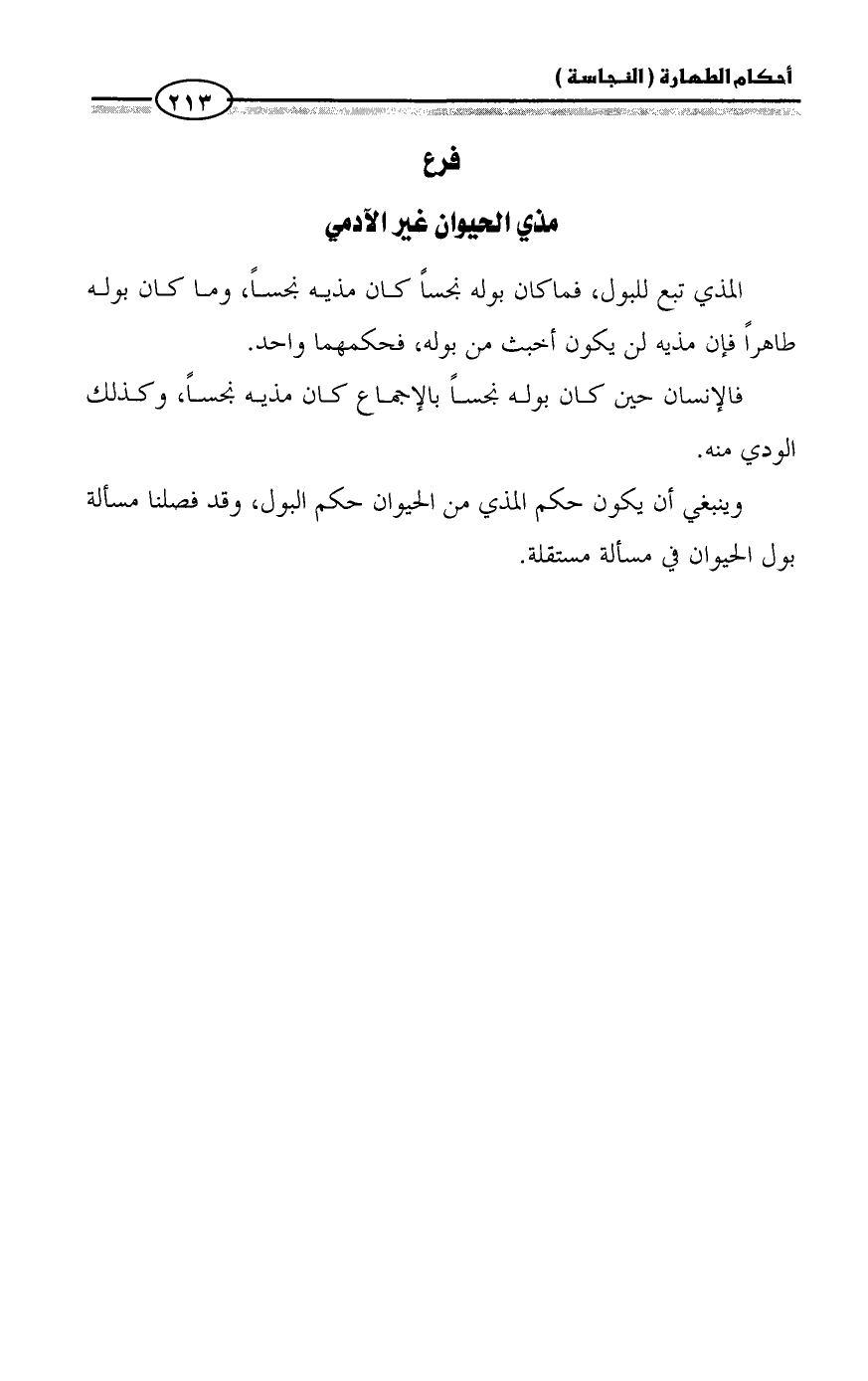 وينبغي أن يكون حكم المذي من الحيوان حكم البول، وقد فصلنا مسألة بول الحيوان في مسألة مستقلة.