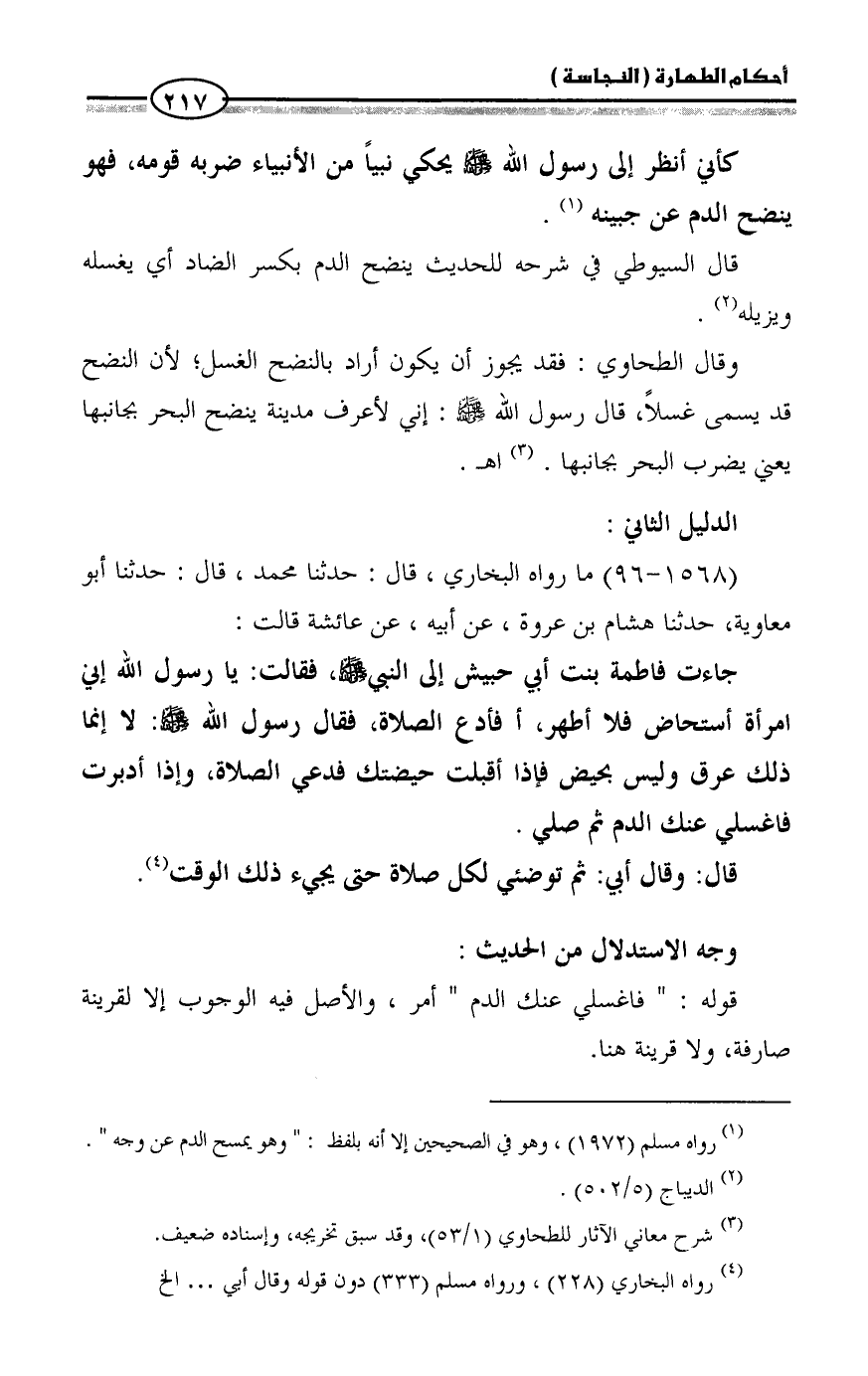قال السيوطي في شرحه للحديث ينضح الدم بكسر الضاد أي يغسله ويزيله (¬٢).