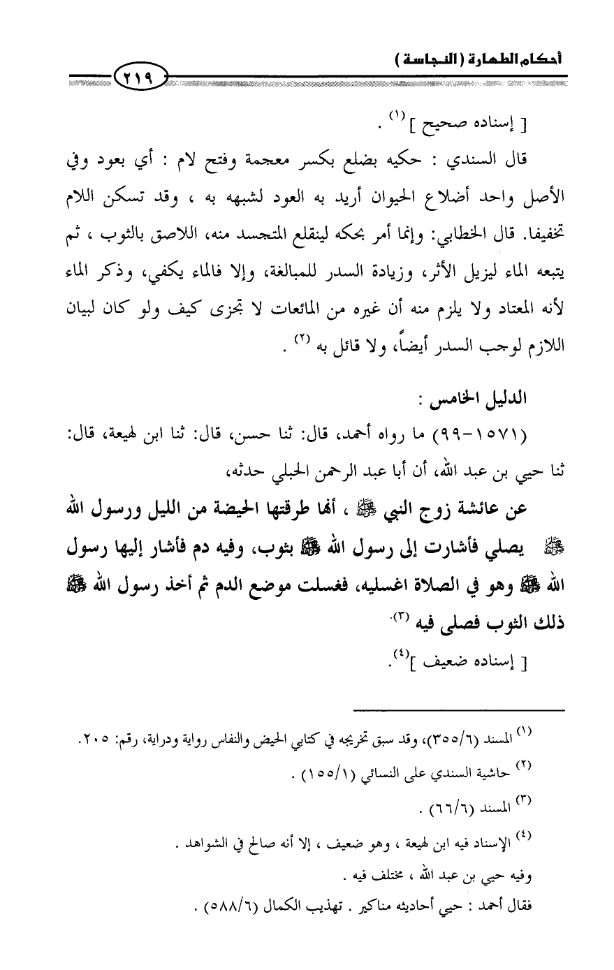 (¬١) المسند (٦/ ٣٥٥)، وقد سبق تخريجه في كتابي الحيض والنفاس رواية ودراية، رقم: ٢٠٥.