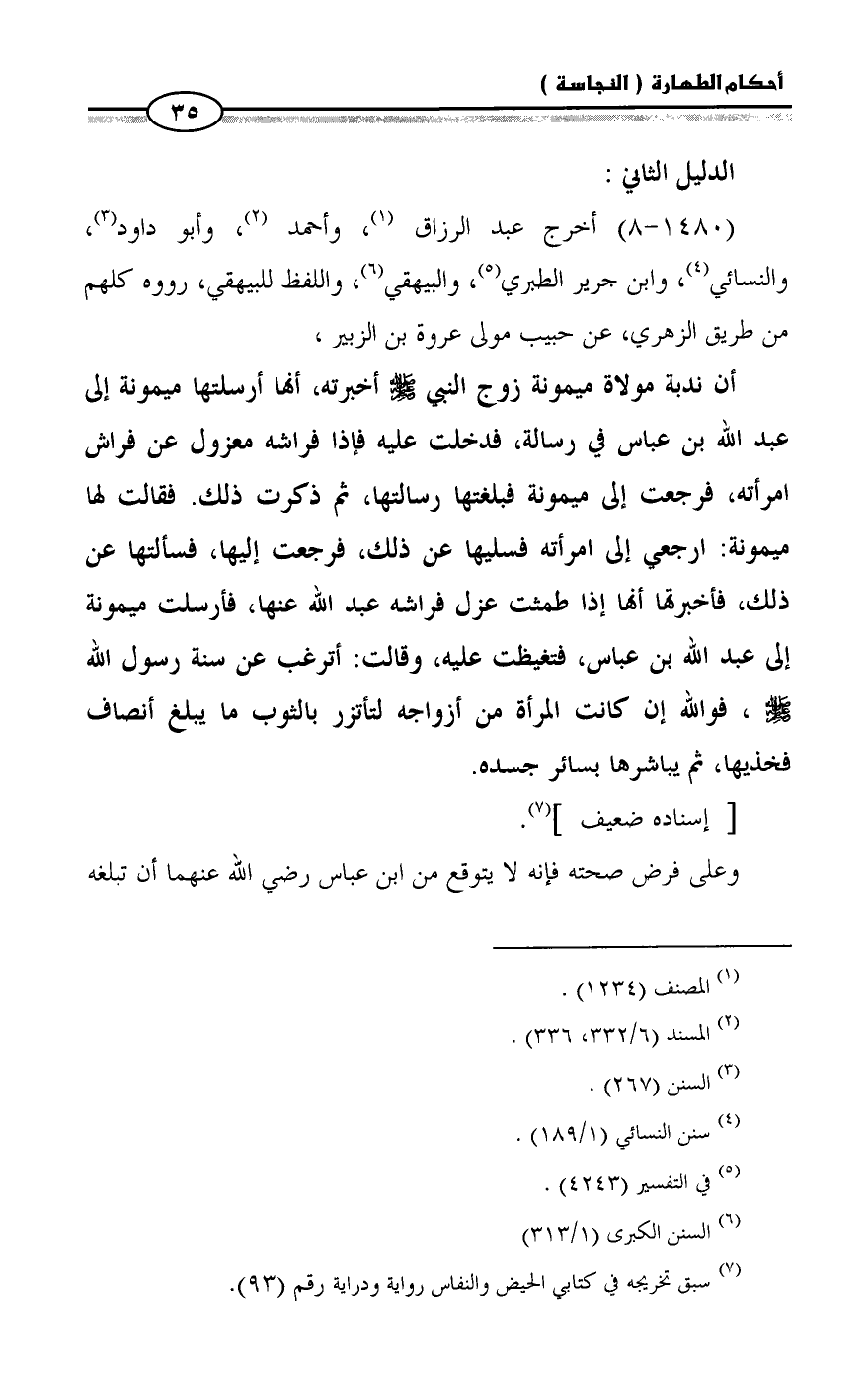 (¬٧) سبق تخريجه في كتابي الحيض والنفاس رواية ودراية رقم (٩٣).