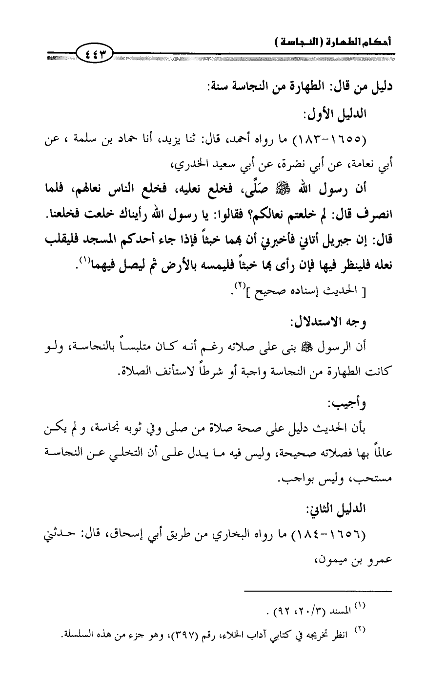 (١٦٥٥ - ١٨٣) ما رواه أحمد، قال: ثنا يزيد، أنا حماد بن سلمة، عن أبي نعامة، عن أبي نضرة، عن أبي سعيد الخدري،