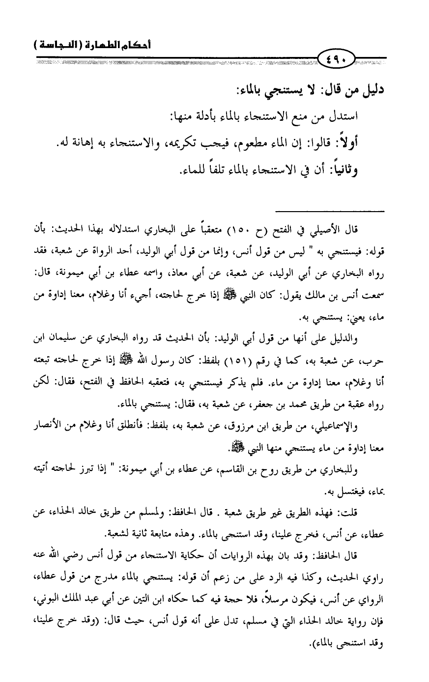 استدل من منع الاستنجاء بالماء بأدلة منها: