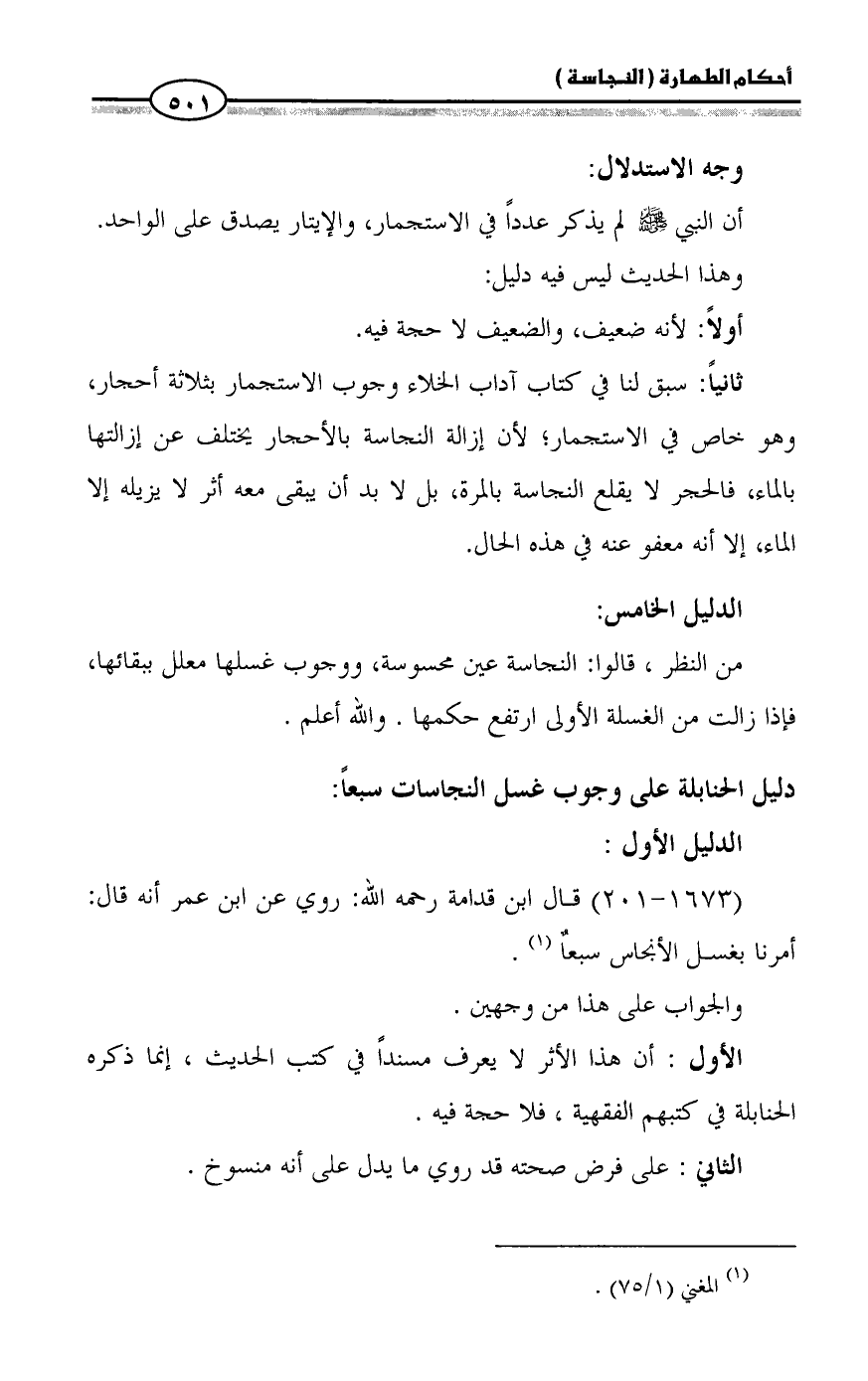 (١٦٧٣ - ٢٠١) قال ابن قدامة رحمه الله: روي عن ابن عمر أنه قال: أمرنا بغسل الأنجاس سبعاٌ (¬١).