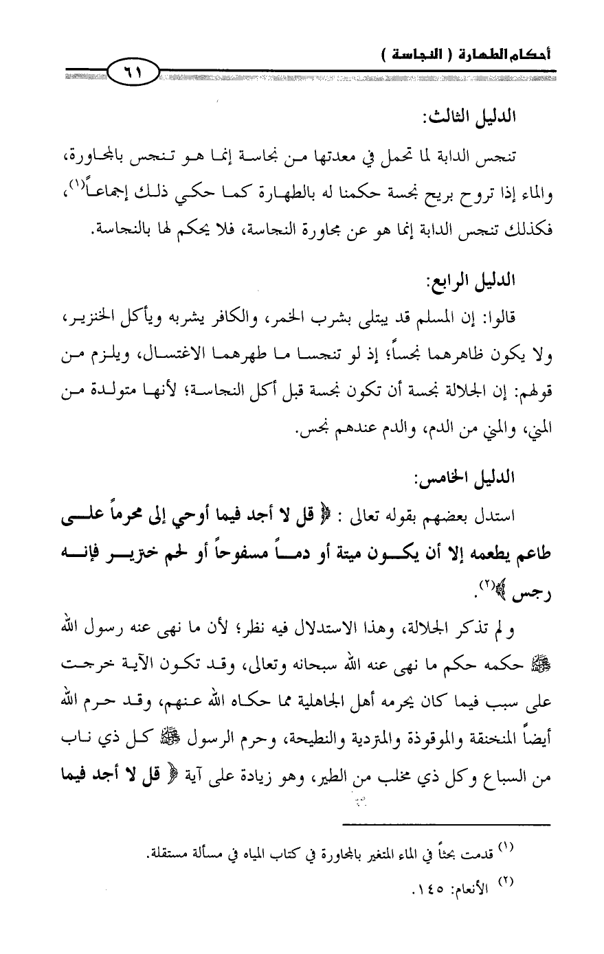 (¬٢) الأنعام: ١٤٥.