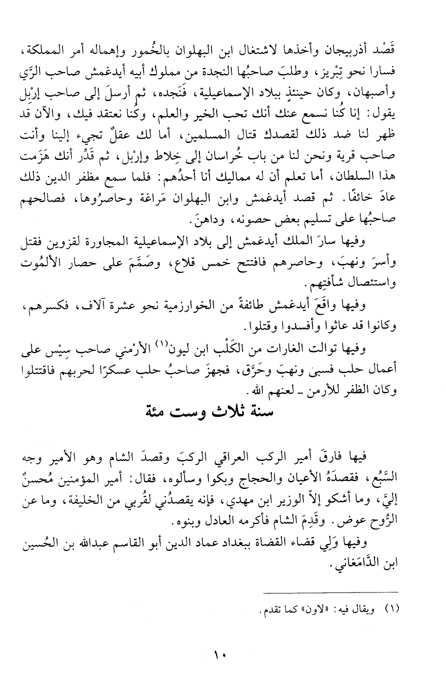 وفيها قَدِمَ بغداد حاجًّا العَلامة برهان الدّين مُحَمَّد بْن عُمر بْن مازة الملقّب صدر جهان، وتلقّاه الأعيان، وحُمِلت إِلَيْهِ الإِقامات، وكان معه ثلاثمائة فقيه، وكان زعيم بُخارَى يؤدّي الخراج إِلى الخطا، وينوب عنهم بالبلد، ويظلم ويعسف، حتّى لقبوه صدر جهنم.