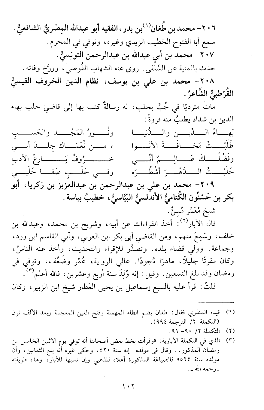 206 - مُحَمَّد بْن طُغان بْن بدر، الفقيه أَبُو عَبْد الله المصريّ الشّافعيّ. [المتوفى: 604 هـ]