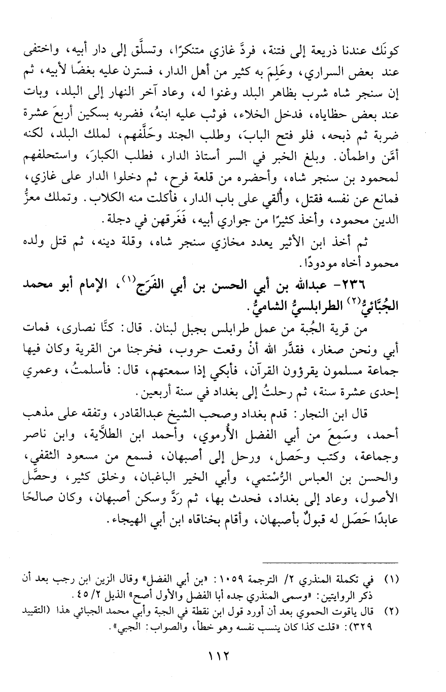 236 - عَبْد الله بْن أَبِي الحَسَن بْن أَبِي الفَرَج، الإِمام أَبُو مُحَمَّد الْجُبّائيّ الطّرابُلُسيّ الشّاميّ. [المتوفى: 605 هـ]