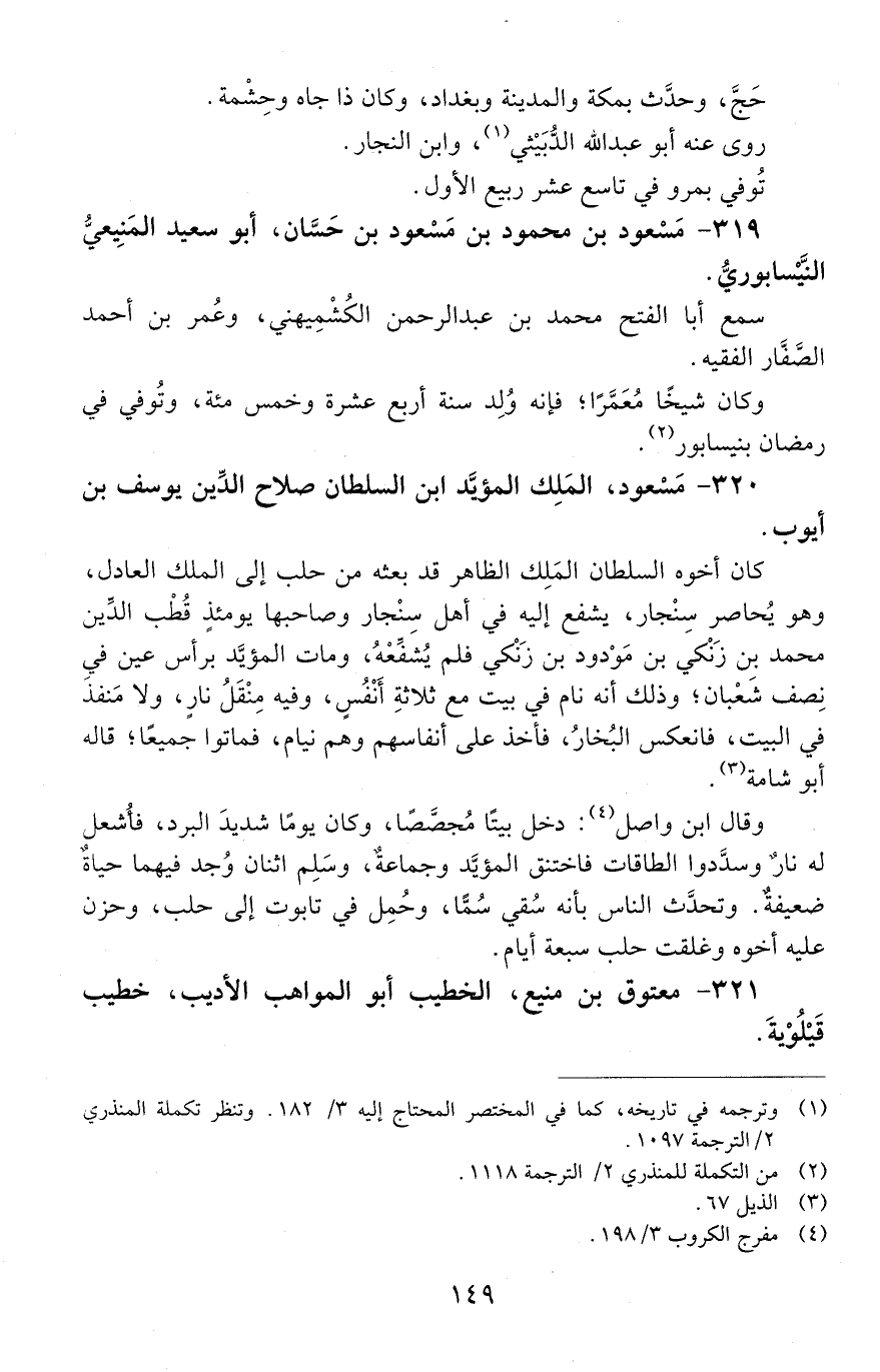 319 - مسعود بْن محمود بْن مسعود بْن حَسَّان، أَبُو سعيد المَنِيعيّ النَّيْسَابُورِيُّ. [المتوفى: 606 هـ]