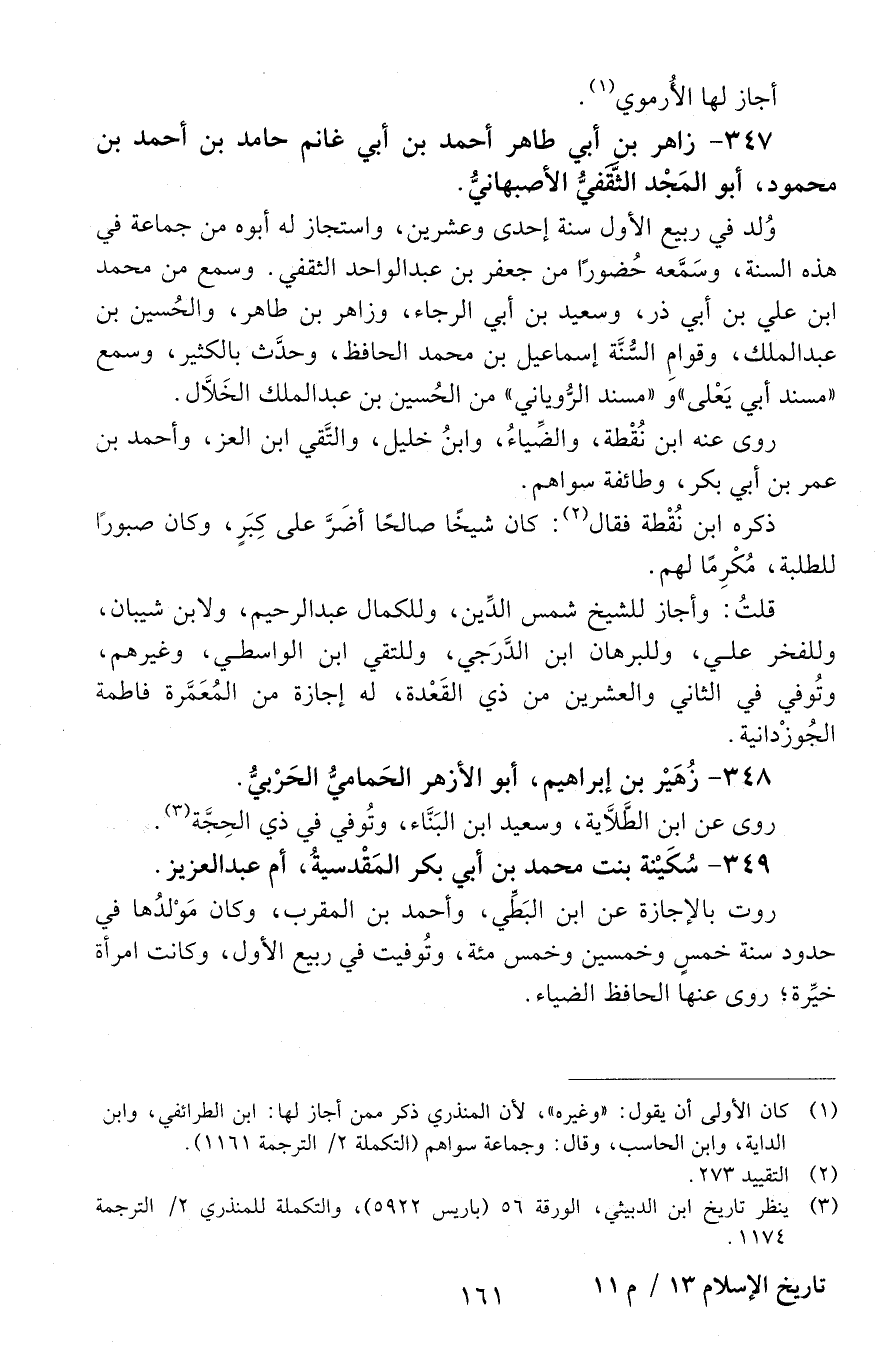 347 - زاهر بْن أَبِي طاهر أَحْمَد بْن أَبِي غانم حامد بْن أَحْمَد بْن محمود، أَبُو المجد الثقفيّ، الأصبهانيّ. [المتوفى: 607 هـ]