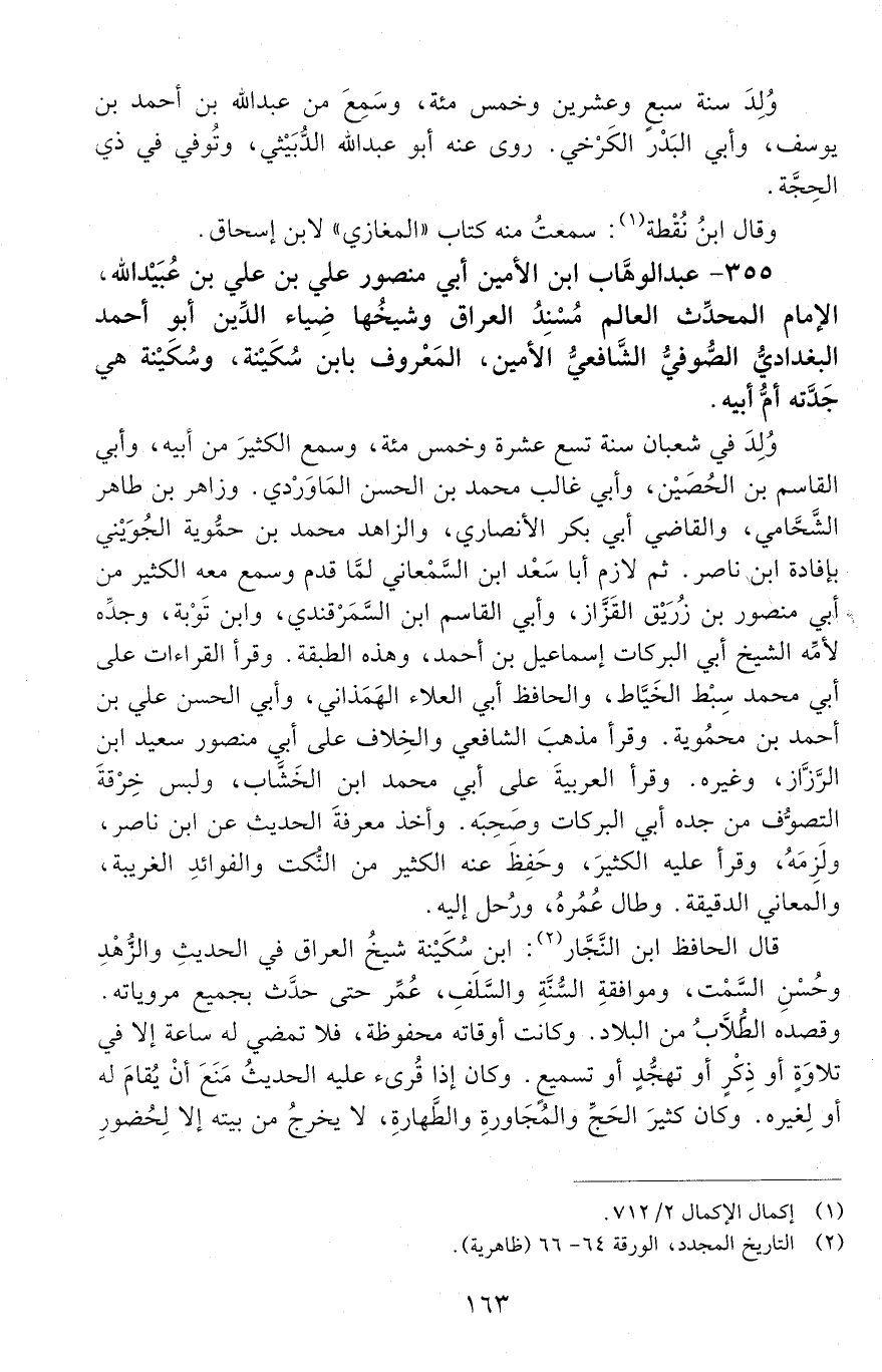 355 - عبد الوهاب ابن الأمين أَبِي منصور عليّ بْن عليّ بْن عُبَيْد الله، الإِمام المحدّث العالم، مُسْنِد العراق وشيخها ضياء الدّين، أَبُو أَحْمَد البغداديّ، الصّوفيّ، الشّافعيّ، الأمين، المعروف بابن سُكَيْنة، [المتوفى: 607 هـ]