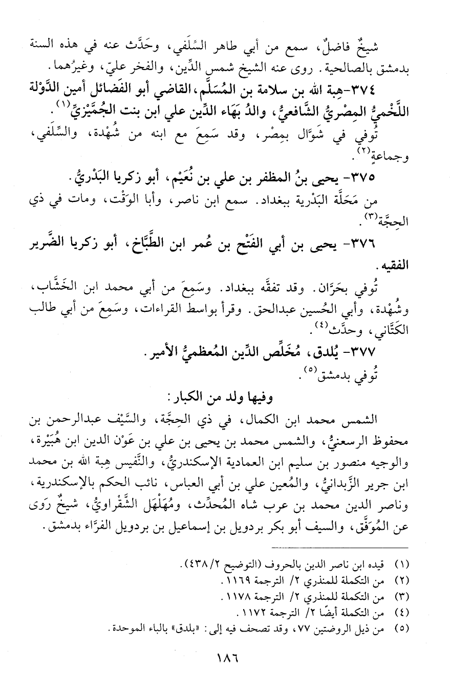 375 - يَحْيَى بْن المظفّر بْن عليّ بْن نُعَيم، أَبُو زكريّا البدريّ. [المتوفى: 607 هـ]
