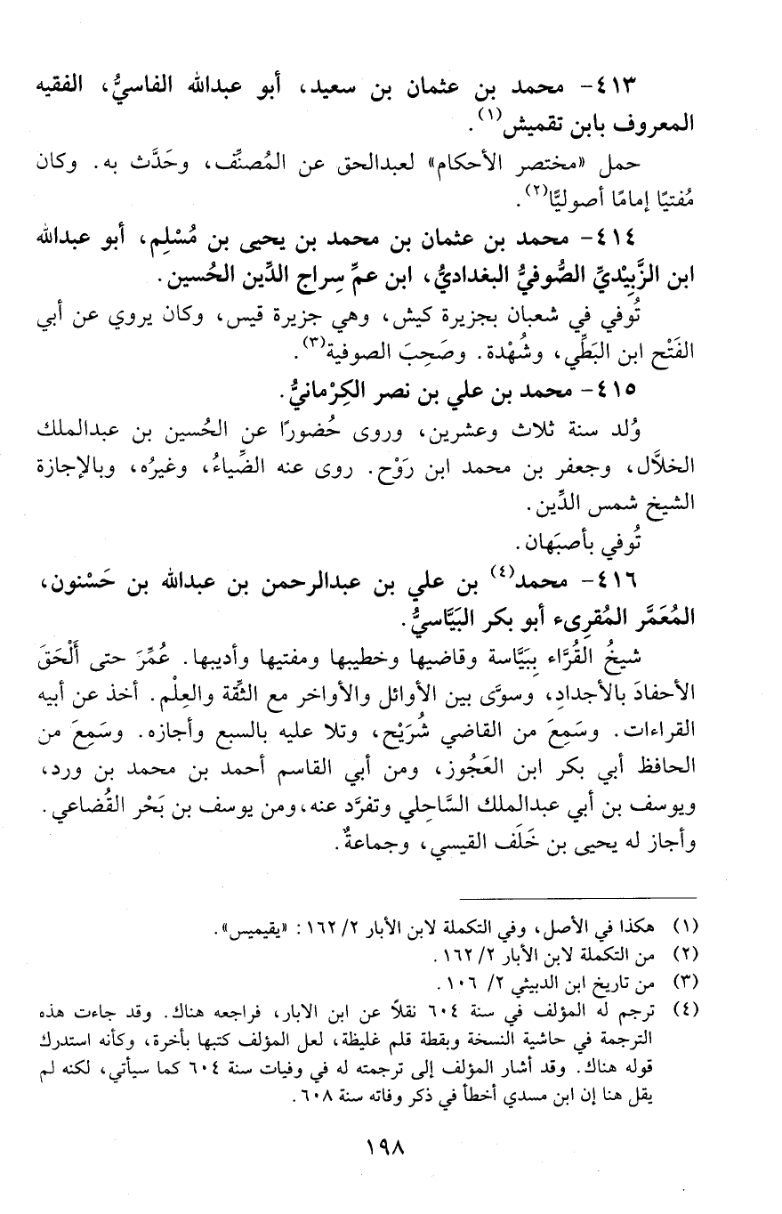 416 - مُحَمَّد بْن علي بْن عَبْد الرَّحْمَن بْن عَبْد اللَّه بْن حسنون، المعمّر المقرئ أَبُو بَكْر البيّاسيّ. [المتوفى: 608 هـ]