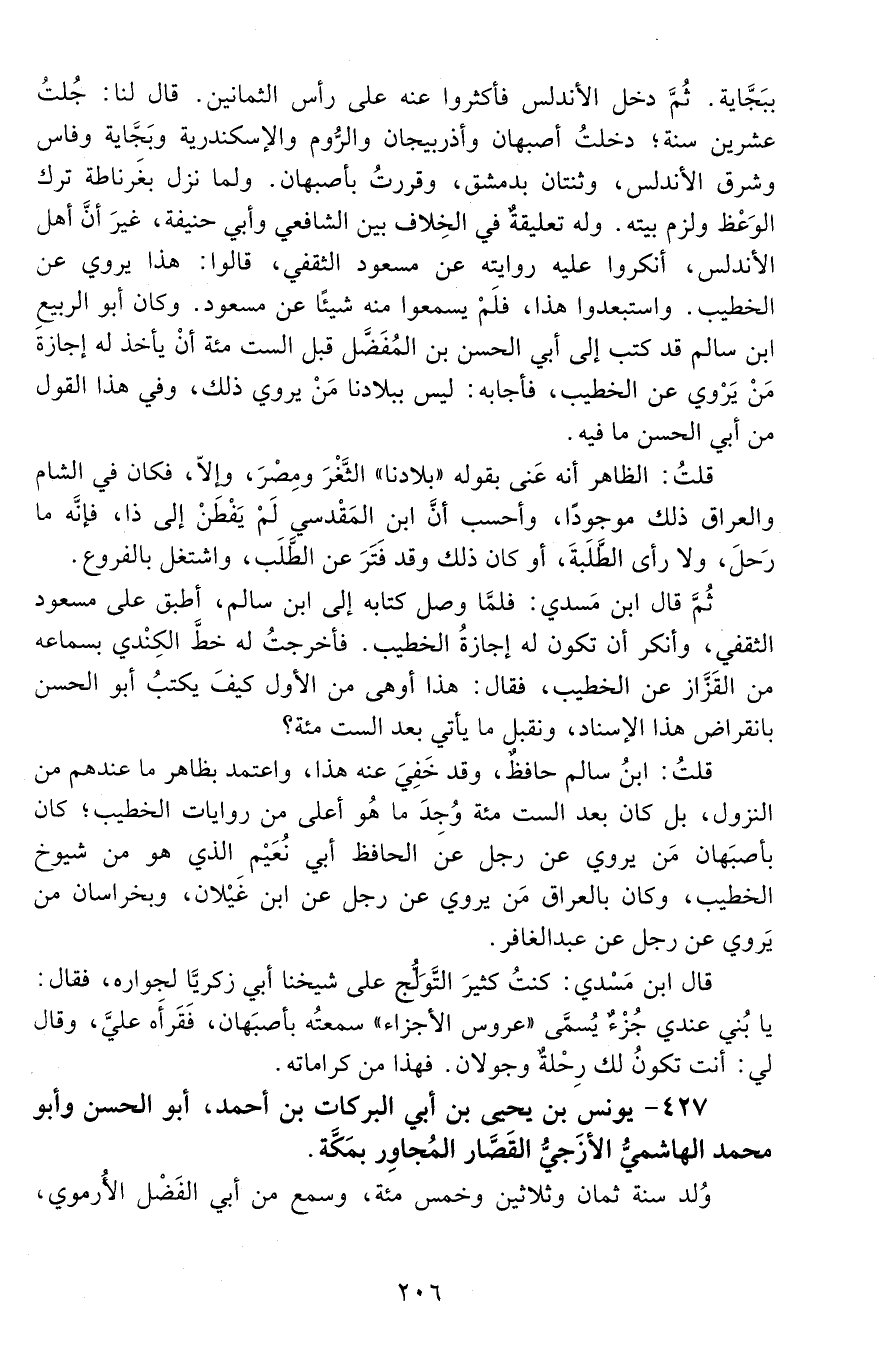 427 - يونس بْن يَحْيَى بْن أَبِي البركات بْن أحمد، أبو الحسن وأبو مُحَمَّد الهاشميّ الأزَجيّ القَصّار المجاور بمكَّة. [المتوفى: 608 هـ]