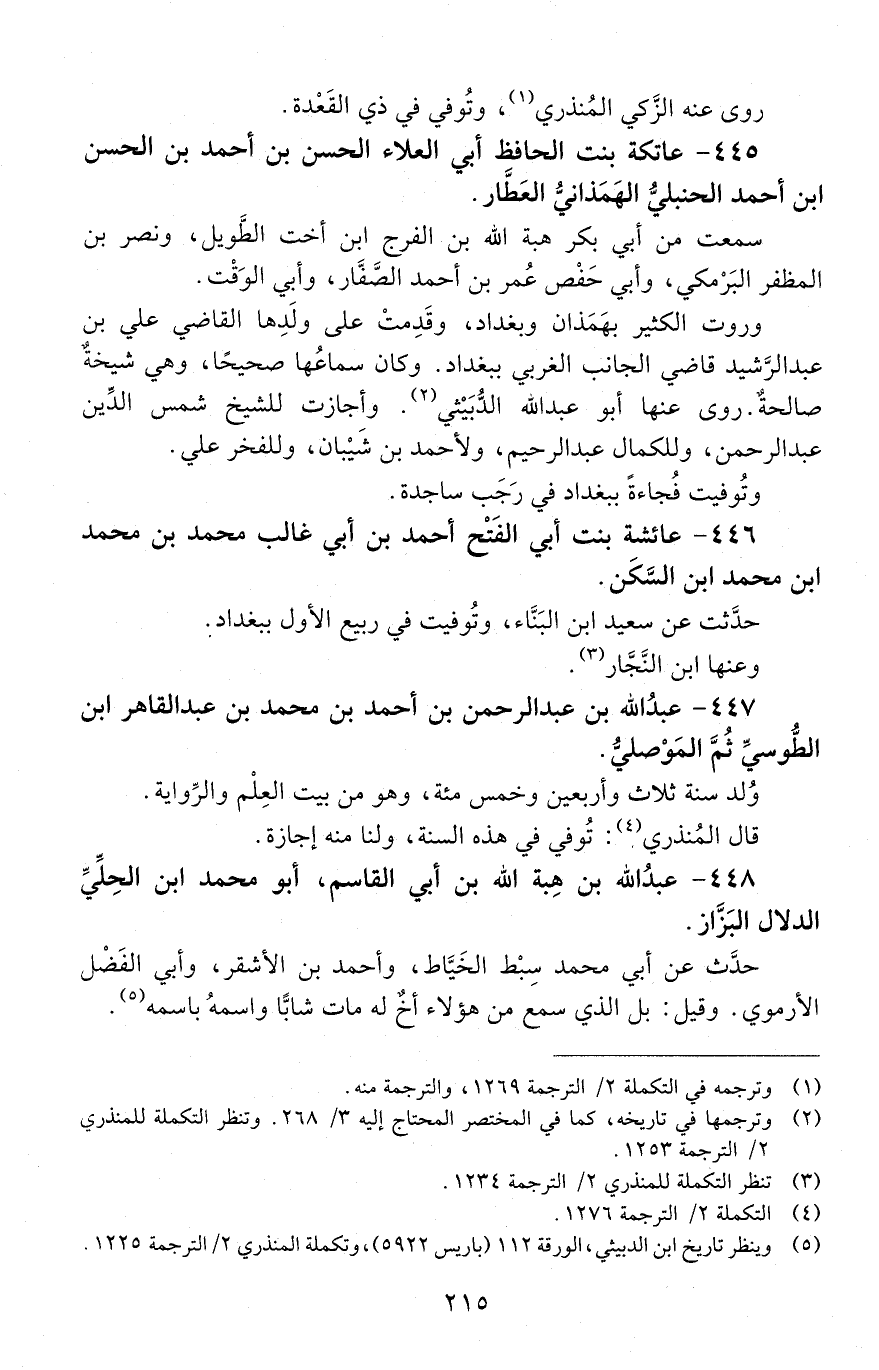 445 - عاتكة بنت الحافظ أَبِي العلاء الْحَسَن بْن أَحْمَد بْن الحسن بن أحمد الحنبلي الهمذاني العطار. [المتوفى: 609 هـ]