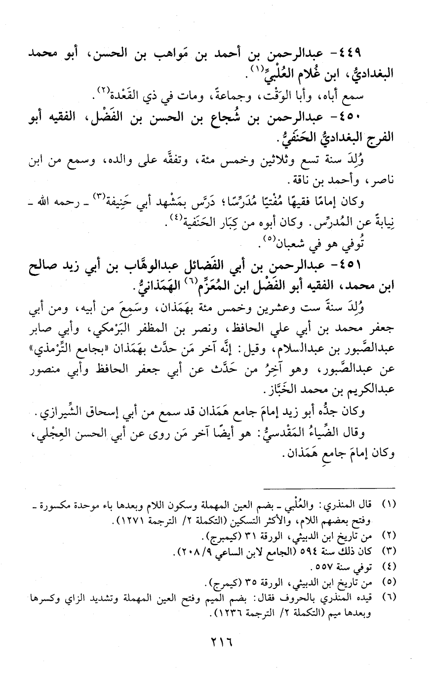 451 - عبد الرحمن بن أبي الفضائل عبد الوهاب بن أبي زيد صالح بن محمد، الفقيه، أبو الفضل ابن المعزم الهمذاني. [المتوفى: 609 هـ]