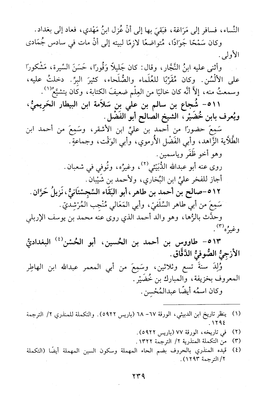 513 - طاوس بن أحمد بن الحسين، أبو الحسن البغدادي الأزجي الصوفي الدقاق. [المتوفى: 610 هـ]