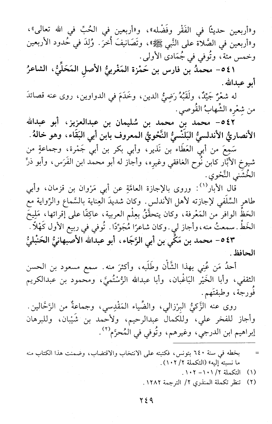 542 - محمد بن محمد بن سليمان بن عبد العزيز، أبو عبد الله الأنصاري الأندلسي البلنسي النحوي، المعروف بابن أبي البقاء وهو خاله. [المتوفى: 610 هـ]