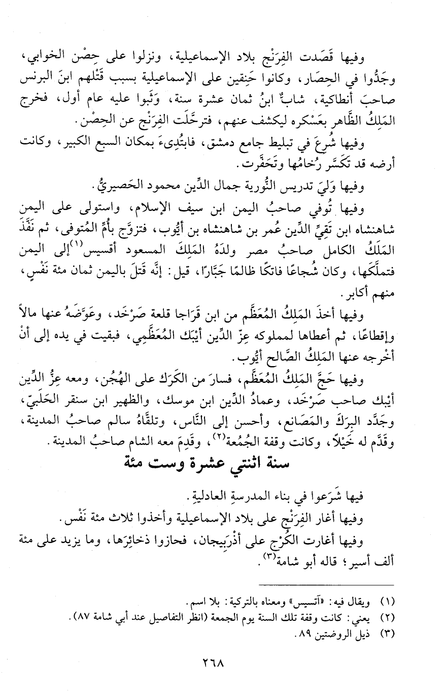 وفيها أغارت الكُرْج عَلَى أَذْرَبِيجَان، فحازوا ذخائِرَها، وما يزيد عَلَى مائة ألف أسير؛ قاله أبو شامة. -[269]-
