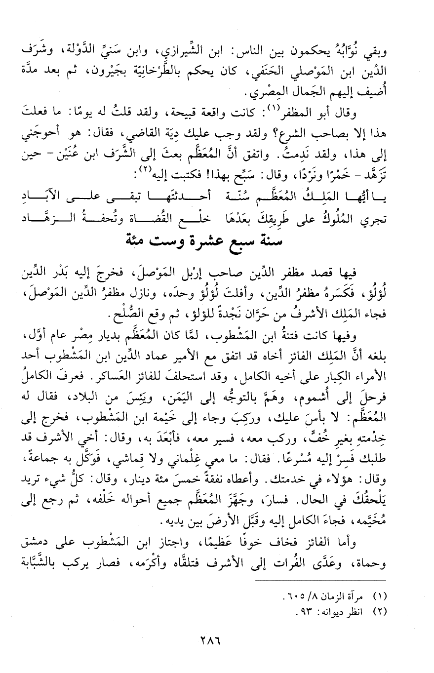 وفيها قَتَلَ صاحبُ سِنْجار أخاه، فسارَ الملكُ الْأشرف إليها فأخذَها، وعوَّض صاحبَها الرَّقَة، فنزل من سنجار بأهله، وَهُوَ آخر ملوك البيت الْأتابكي، ومُدَّة مُلْكهم أربعٌ وتسعون سنةً، ومات بعد أن تسلَّم الرَّقة بقليلٍ، -[288]- وانقصفَ شبابهُ ولم يُمتع بعد قَتْل أخيه.