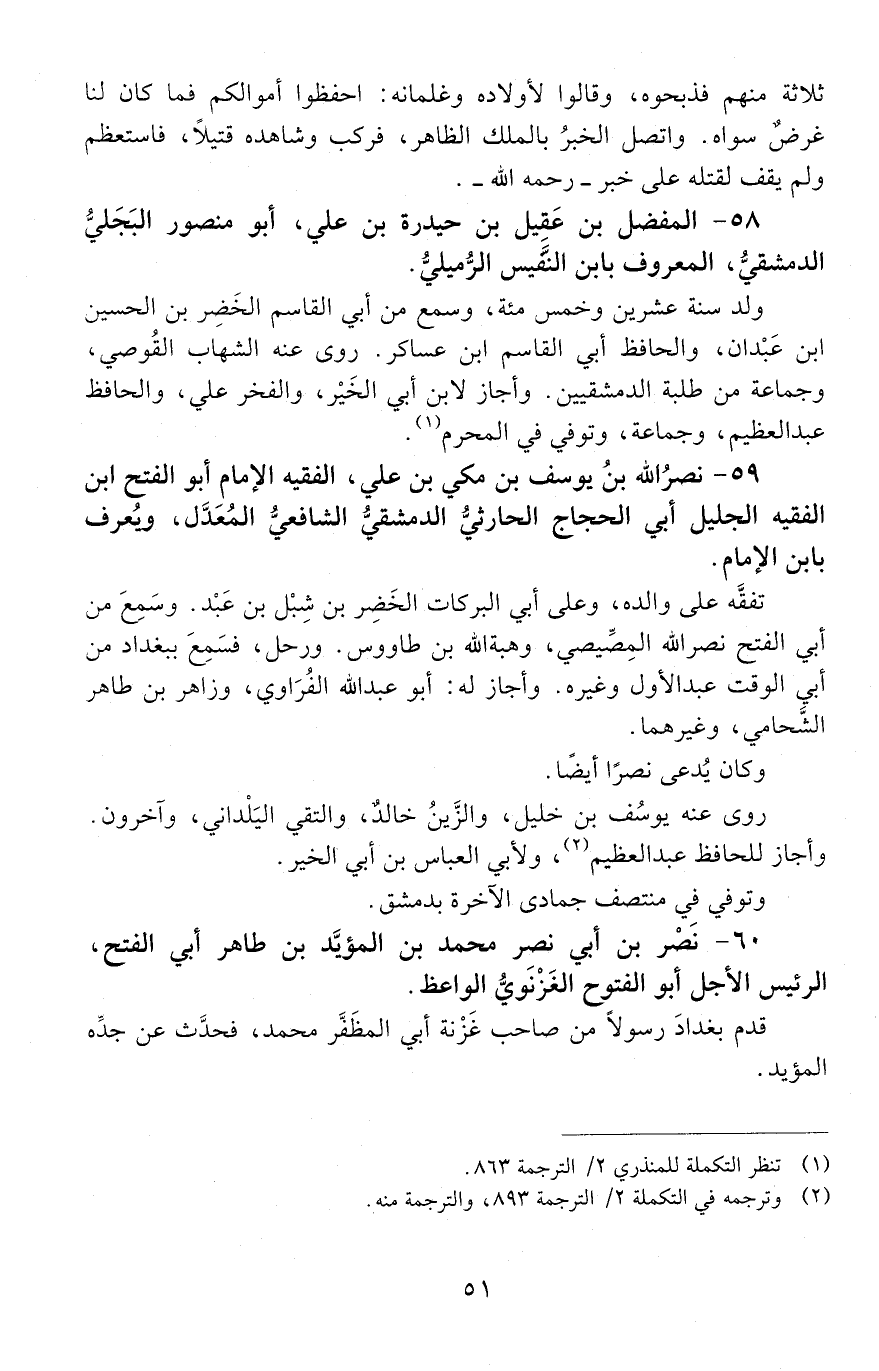 58 - المفضّل بْن عَقِيل بْن حيدرة بْن عليّ، أَبُو منصور البَجَليّ الدّمشقيّ، المعروف بابن النفيس الرميلي. [المتوفى: 601 هـ]