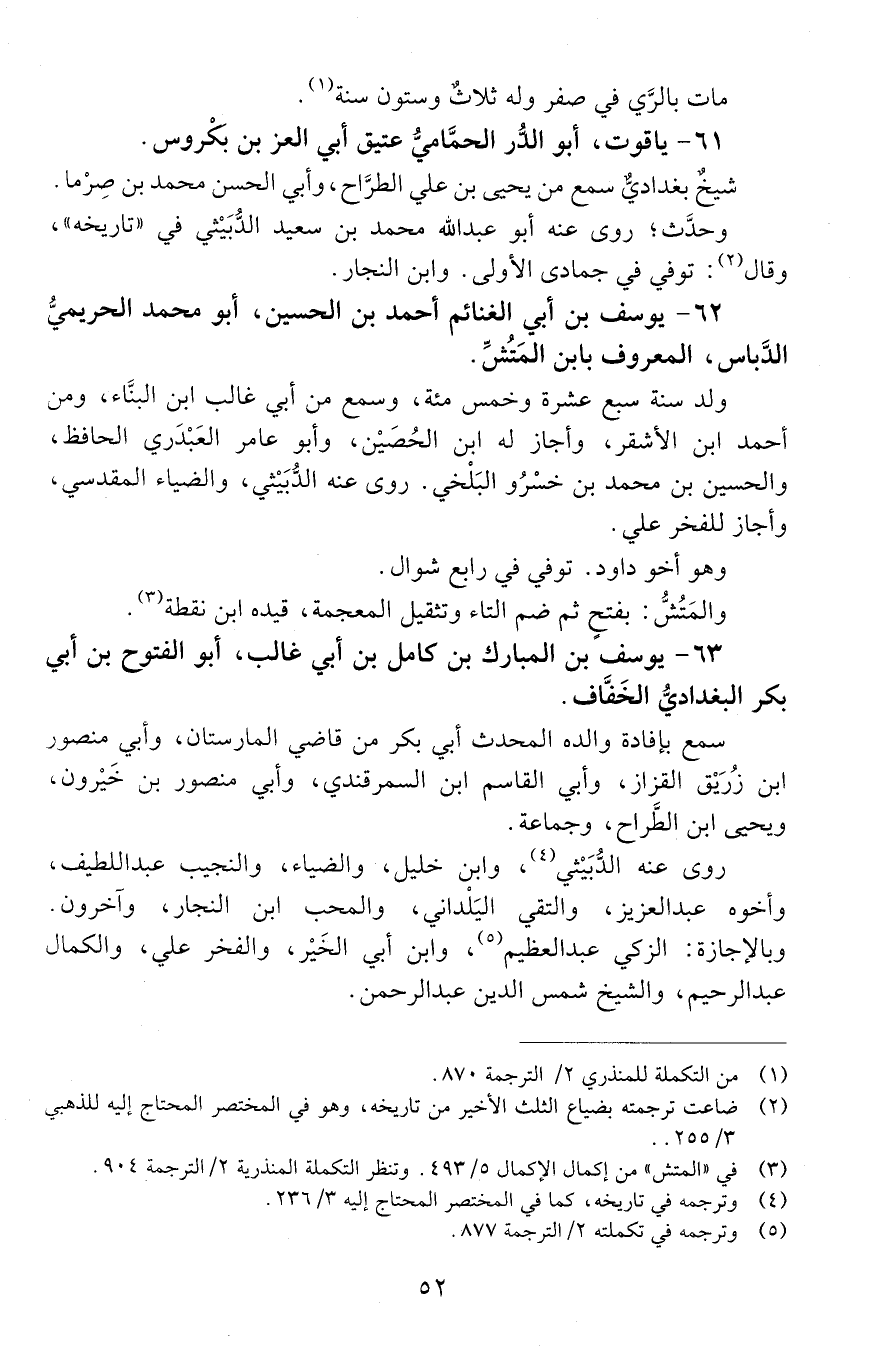 63 - يوسف بْن المبارك بْن كامل بْن أَبِي غالب، أَبُو الفتوح بْن أَبِي بَكْر البغداديّ الخَفّاف. [المتوفى: 601 هـ]