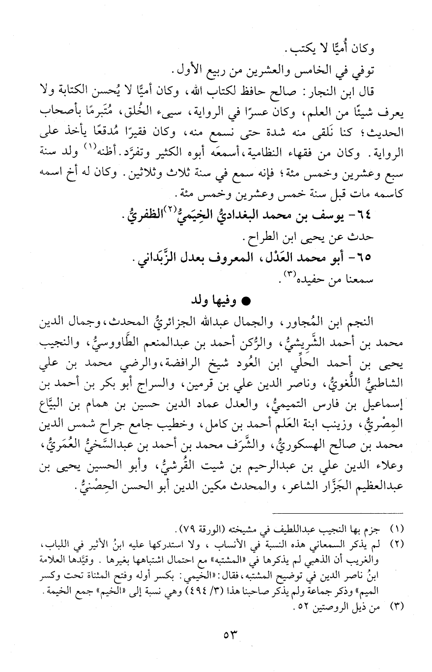64 - يوسف بْن مُحَمَّد البغداديّ الخِيَمِيّ الظَّفَريّ. [المتوفى: 601 هـ]