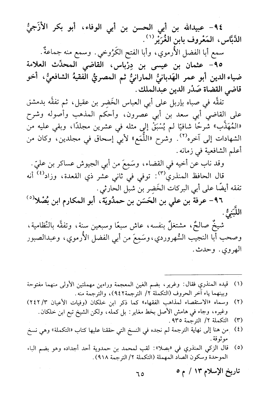 95 - عُثْمَان بْن عيسى بْن دِرْباس، القاضي المحدِّث العلامة ضياء الدّين أَبُو عُمَر الهَدَبانيّ المارانيّ ثُمَّ المصريّ الفقيه الشّافعيّ، [المتوفى: 602 هـ]