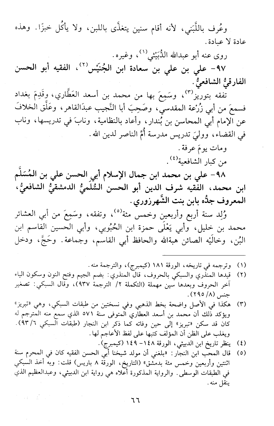 97 - علي بن علي بن سعادة بن الجنيس، الفقيه أَبُو الحَسَن الفارقي، الشَّافِعِيّ. [المتوفى: 602 هـ]