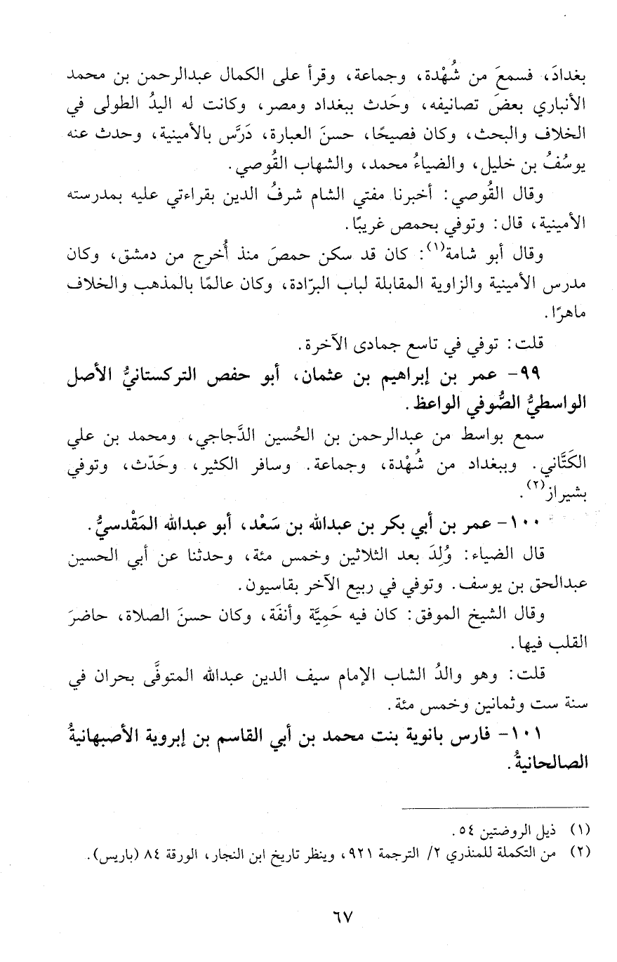 99 - عُمَر بْن إِبْرَاهيم بْن عُثْمَان، أَبُو حفص التّركستانيُّ الأصلِ، الواسطيّ، الصّوفيّ، الواعظ. [المتوفى: 602 هـ]
