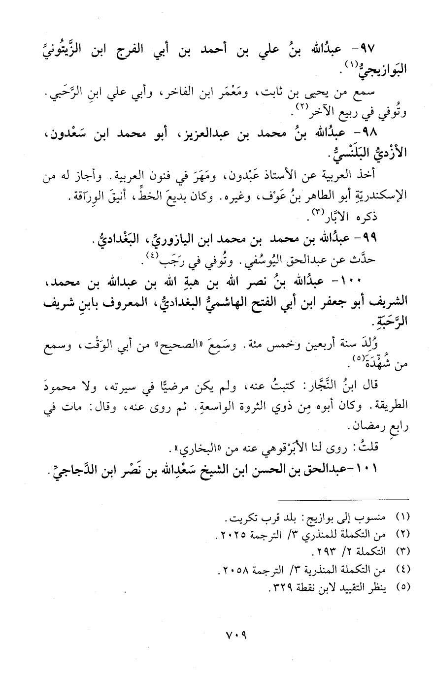 97 - عَبْد اللَّه بْن عَلِيِّ بْن أَحْمَد بْن أبي الفرج ابن الزَّيْتُونيّ البَوازيجيُّ. [المتوفى: 622 هـ]
