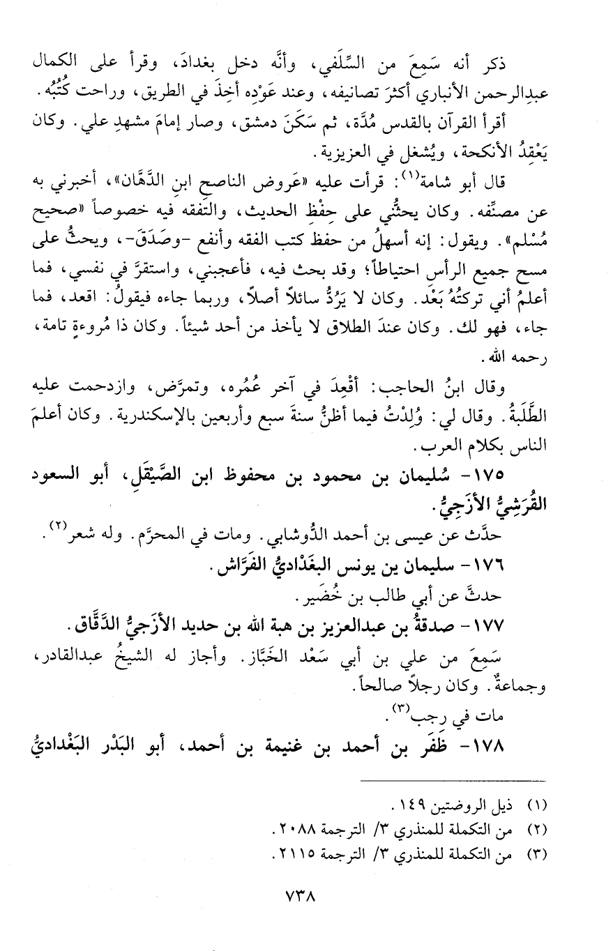 178 - ظَفَرُ بن أحمد بن غنيمة بن أحمد، أبو البدر البَغْداديُّ الصُّوفيّ الخَرَّاط الخَيَّاط، المعروف بابن زَعْرُورَة. [المتوفى: 623 هـ]-[739]-
