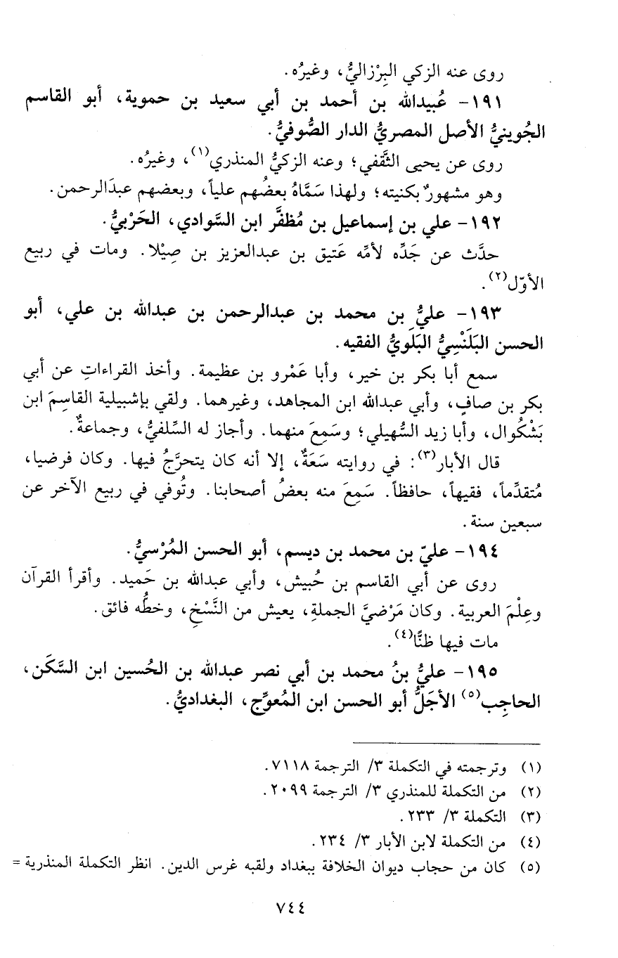 195 - عليُّ بن مُحَمَّد بْن أَبِي نصر عَبْد الله بن الْحُسَيْن ابن السَّكَن، الحاجِب الأَجَلّ أبو الحَسَن ابن المعوِّج البغداديّ. [المتوفى: 623 هـ]-[745]-