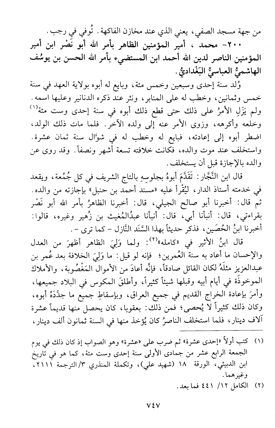 200 - مُحَمَّد، أمير المؤمنين الظّاهر بأمرِ الله أبو نصر ابن أمير المؤمنين النّاصر لدين الله أحمد ابن المستضيء بأمر الله الحَسَن بن يوسُف الهاشمي العباسيّ البغداديّ. [المتوفى: 623 هـ]