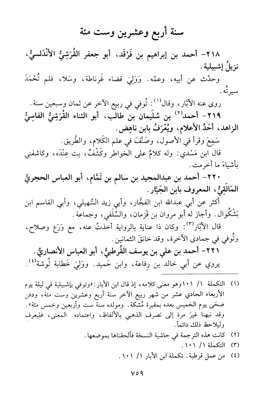 218 - أحمد بن إبراهيم بن فَرْقَد، أبو جعفر القُرَشيّ الأَنْدَلسِيُّ، [المتوفى: 624 هـ]