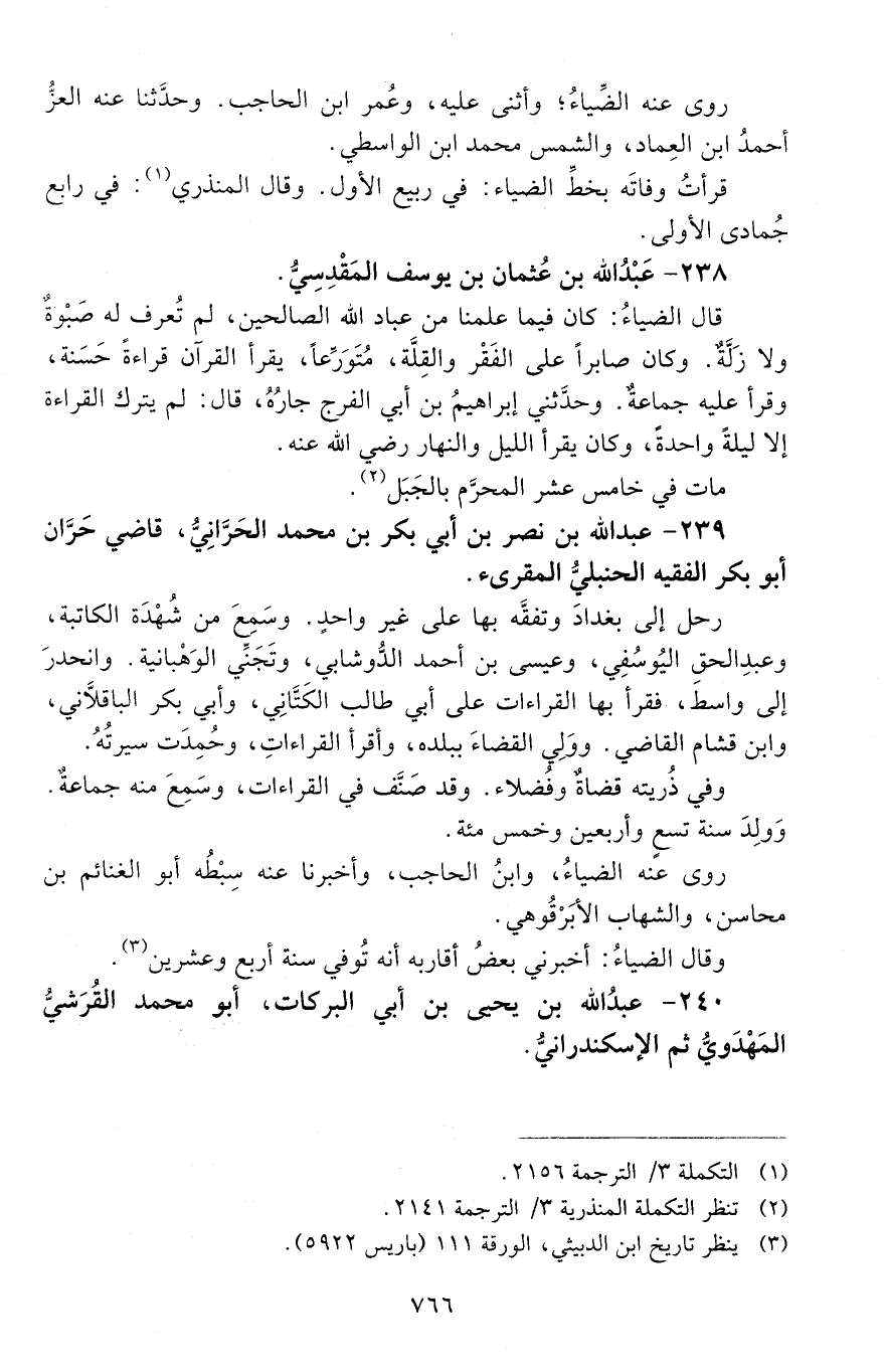239 - عبد الله بن نصر بن أبي بكر بن مُحَمَّد الحَرّانيّ، قاضي حَرَّان أبو بكر الفقيه الحَنْبَليّ المقرئ. [المتوفى: 624 هـ]