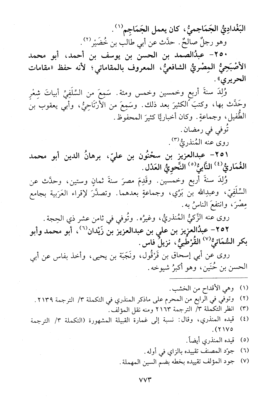 250 - عبد الصَّمَد بن الحَسَن بن يوسُف بن أحمد، أبو مُحَمَّد الأَصْبَحيّ المِصْريّ الشّافعيّ، المعروف بالمقاماتيّ؛ لأنّه حفظ " مقامات الحريريّ ". [المتوفى: 624 هـ]