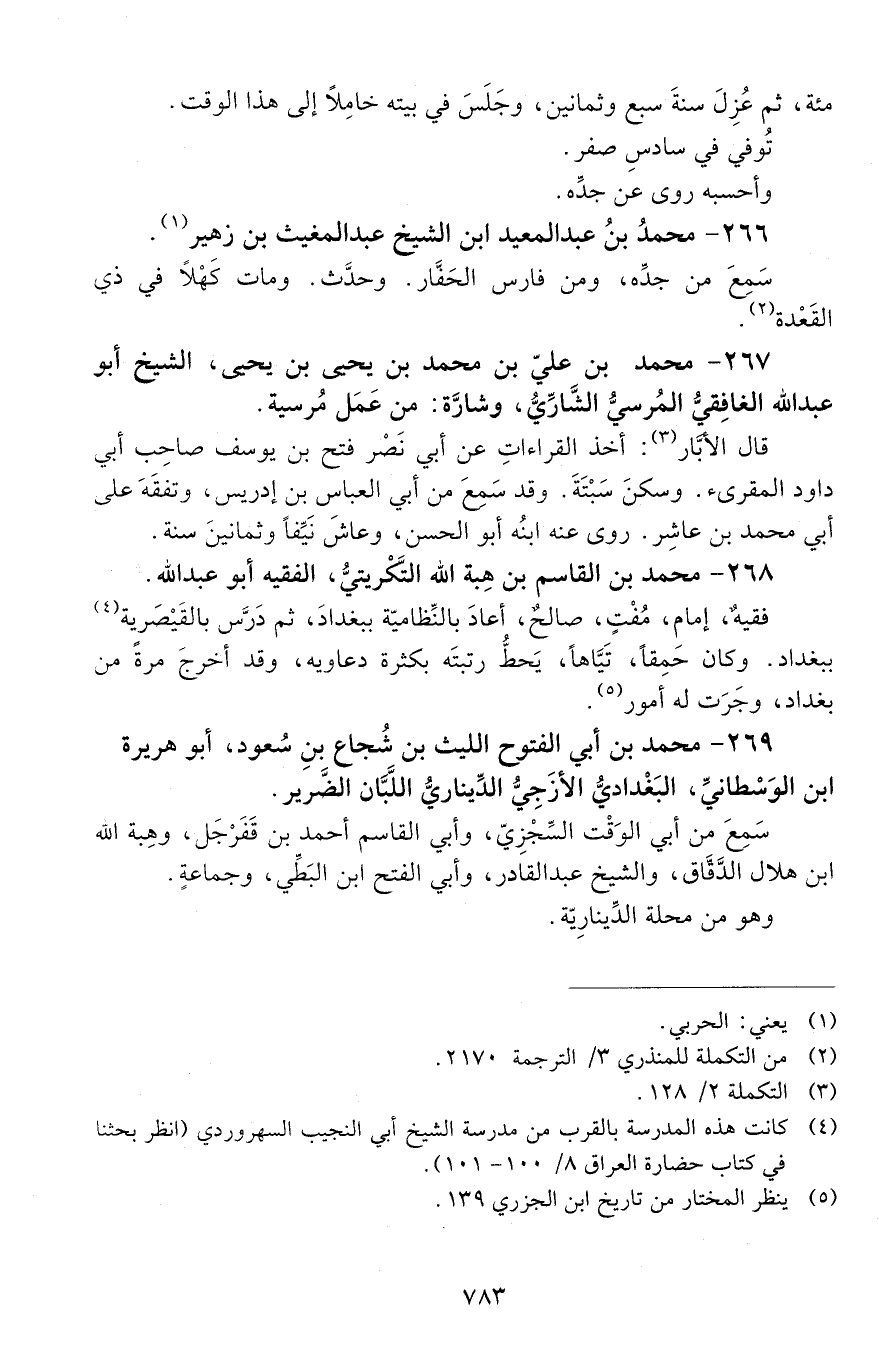 269 - مُحَمَّد بن أبي الفتوح الَّليْث بن شجاع بن سعود، أبو هريرة ابن الوَسْطَانيُّ البَغْداديُّ الأَزَجيُّ الدِّينارِيُّ اللبَّان الضّرير. [المتوفى: 624 هـ]