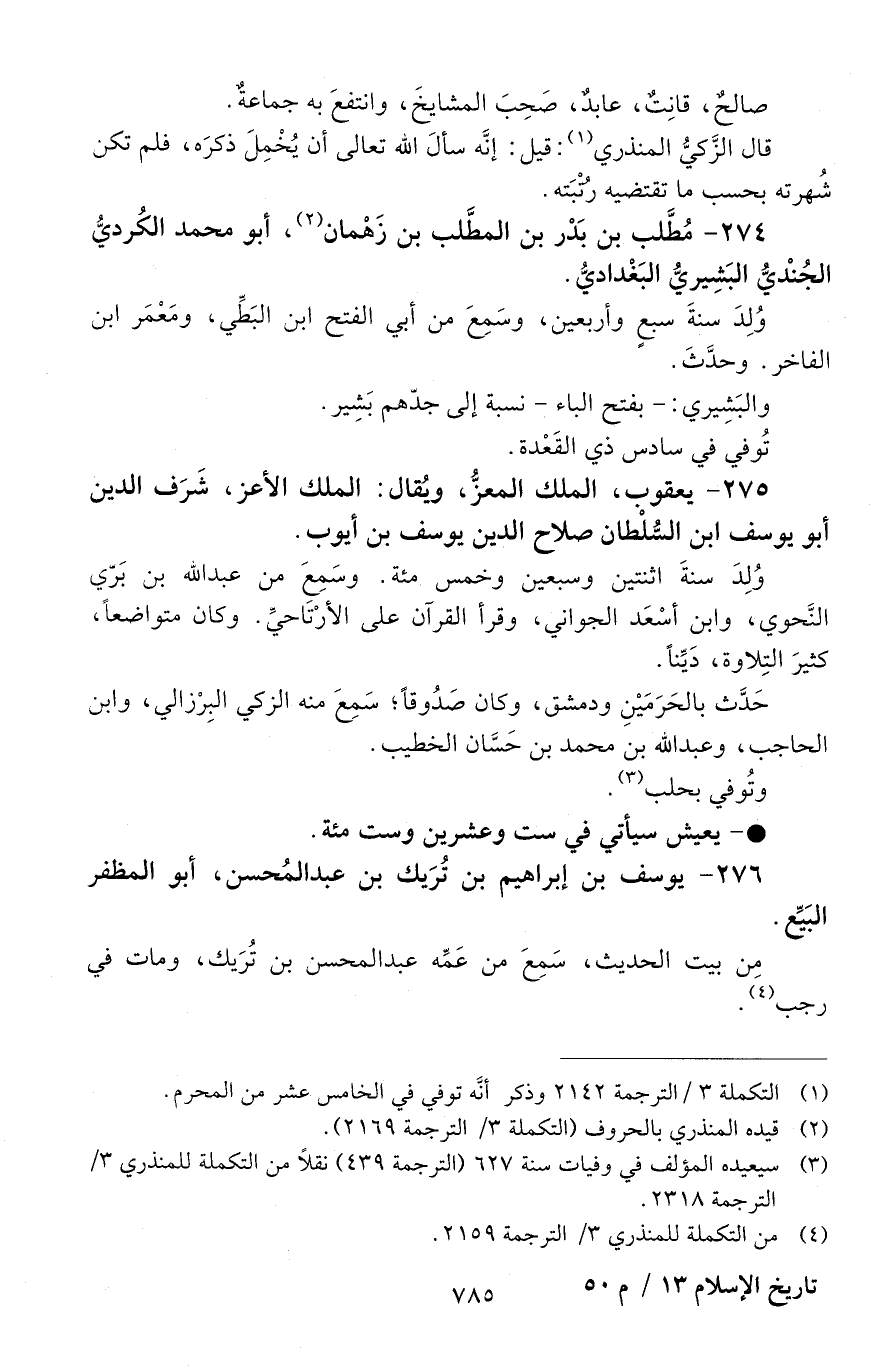 274 - مُطَّلب بن بَدْر بن المُطَّلِب بن زَهْمان، أبو مُحَمَّد الكُرْديُّ الْجُنْديُّ البَشِيريُّ البَغْداديُّ. [المتوفى: 624 هـ]
