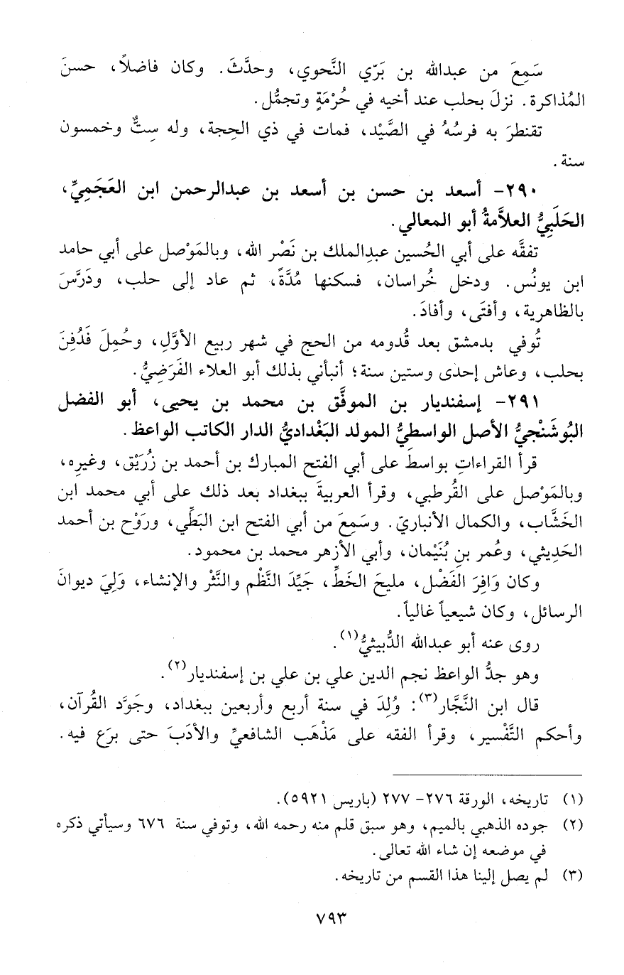 291 - اسفنديار بن المُوفَّق بن مُحَمَّد بن يحيى، أبو الفضل البُوشَنْجِيُّ الأَصل، الواسطيُّ المولد البَغْداديُّ الدَّار، الكاتبُ الواعظُ. [المتوفى: 625 هـ]