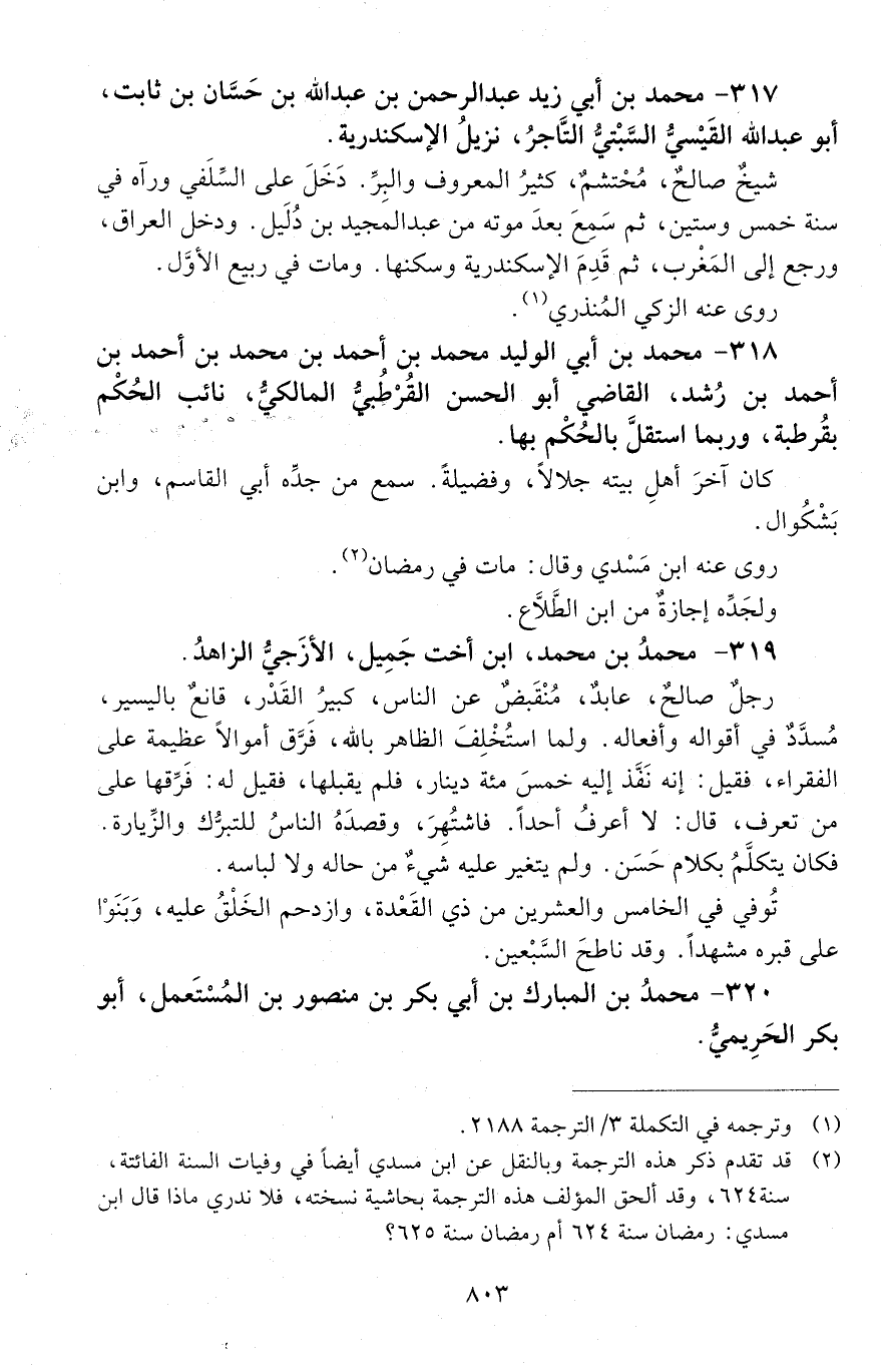 317 - مُحَمَّد بن أبي زيد عبد الرحمن بن عبد الله بن حسّان بن ثابت، أبو عبد الله القَيْسيّ السَّبْتِيُّ التّاجِرُ، [المتوفى: 625 هـ]